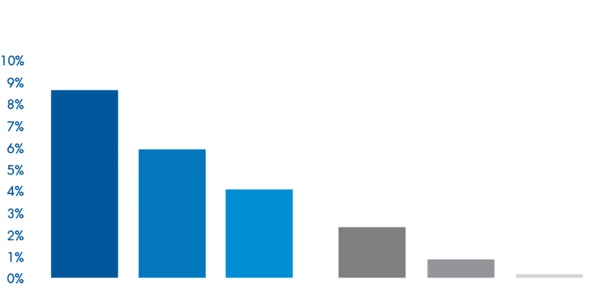 ผลตอบแทนของตราสารหนี้ของเอเชีย ตราสารหนี้ของสหรัฐ และตราสารหนี้ของยุโรป