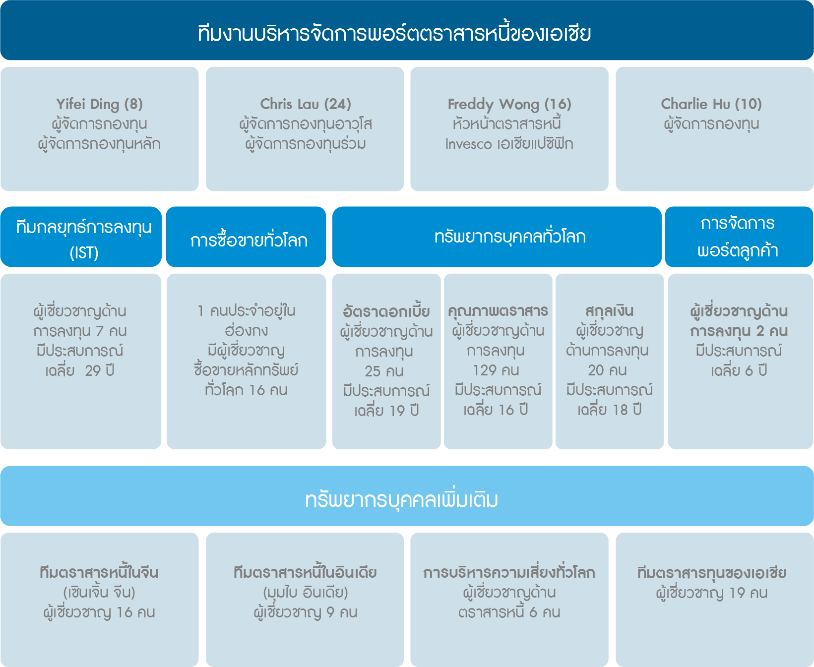 บริษัท Invesco อยู่ในภูมิภาคนี้มาตั้งแต่ปี พ.ศ. 2505 และถือเป็นหนึ่งในบริษัทจัดการลงทุนที่มีประสบการณ์มากที่สุดในภูมิภาคเอเชียแปซิฟิก เราครอบคลุมพื้นที่ให้บริการที่กว้างใหญ่ โดยมีสำนักงานตั้งอยู่ในหลายประเทศ ทั้ง ออสเตรเลีย จีน ฮ่องกง อินเดีย ญี่ปุ่น สิงคโปร์ เกาหลีใต้ และไต้หวันนอกจากนี้ บริษัท Invesco ยังมีการร่วมทุนกับบริษัทในประเทศจีนเพื่อดำเนินธุรกิจภายใต้ชื่อInvesco Great Wall อีกด้วย