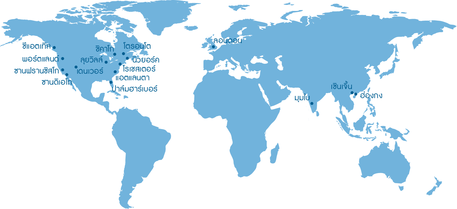 สถานที่ตั้งทั่วโลก : 12 แห่งในตลาดหลักทั่วโลก