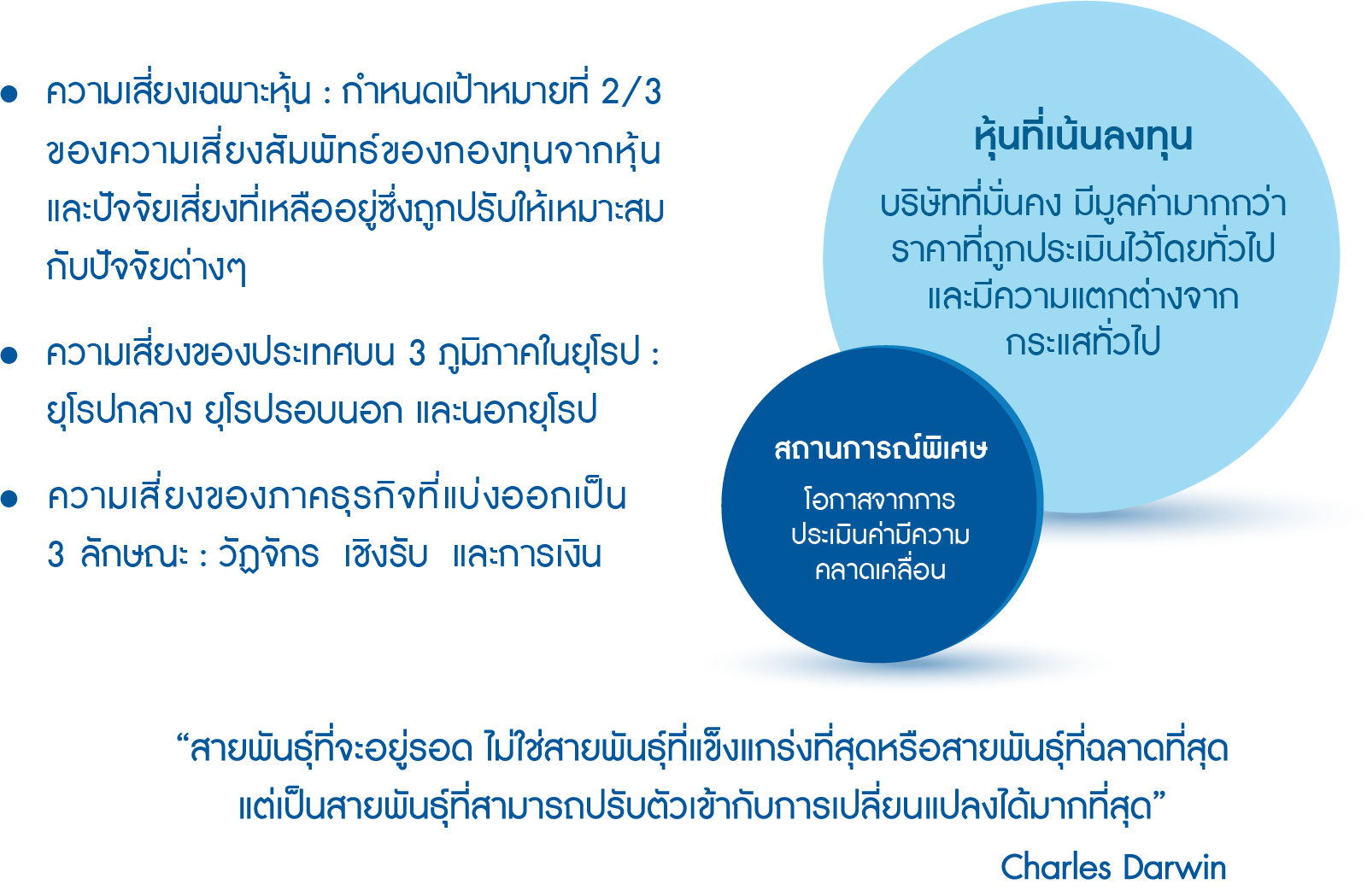 เรามุ่งมั่นที่จะสร้างพอร์ตการลงทุนของหุ้นขนาดเล็กและหุ้นขนาดกลางในภูมิภาคยุโรปที่มีประสิทธิภาพสูงกว่าเกณฑ์มาตรฐานอย่างต่อเนื่องในช่วงระยะเวลา 3 ปี ซึ่งประสิทธิภาพดังกล่าวนี้เกิดขึ้นจากการเลือกหุ้นเป็นหลักมากกว่าอิทธิพลจากปัจจัยเสี่ยง